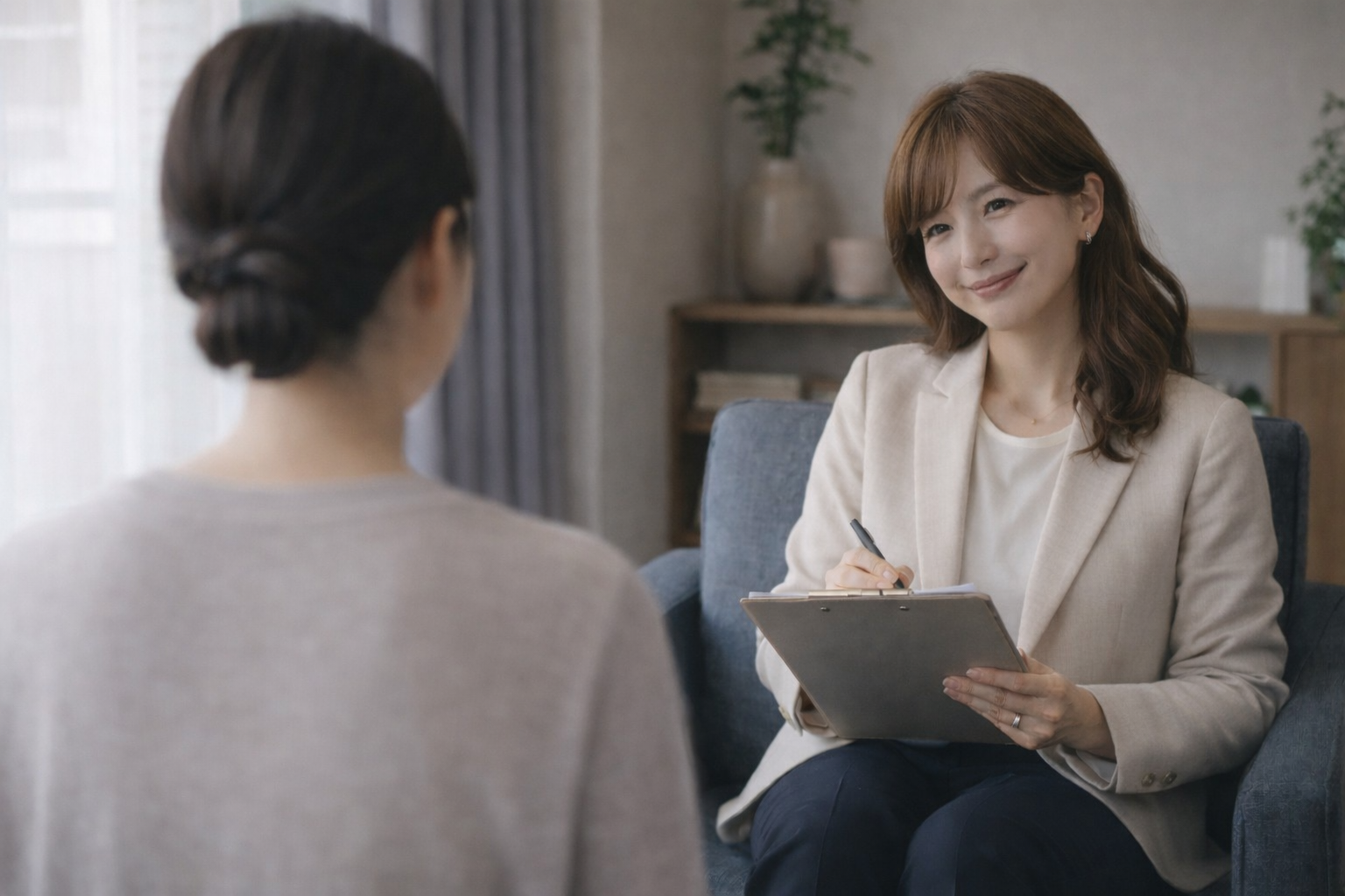 事前無料相談の後、カウンセリングを受ける意志がある場合は、予約日時を相談の上で決めていきます。お仕事や家庭のご都合に合わせて、できるだけ通いやすい日時を調整させていただきます。